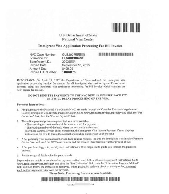 移民签证费收据