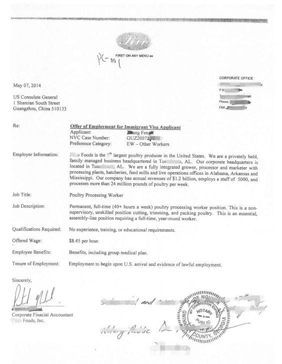 美国大型家禽加工行业雇主海外招聘, 雇主在美国行业排名前 10, 雇主 G 工厂位于阿肯色州,明尼苏达州,阿拉巴马州有超过 12 个分区加工厂,有超过 5,000名雇员, 年营业额 1,200,000,000 美金, 每周出产 2,400,000 镑禽肉制品。