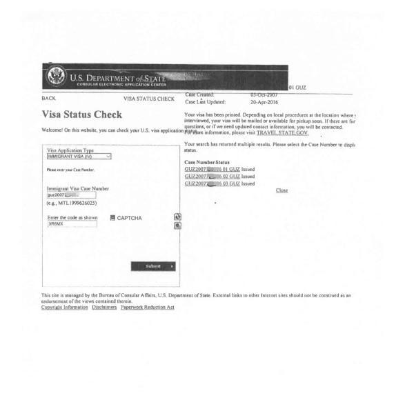 美国官方移民签证查询系统查询结果