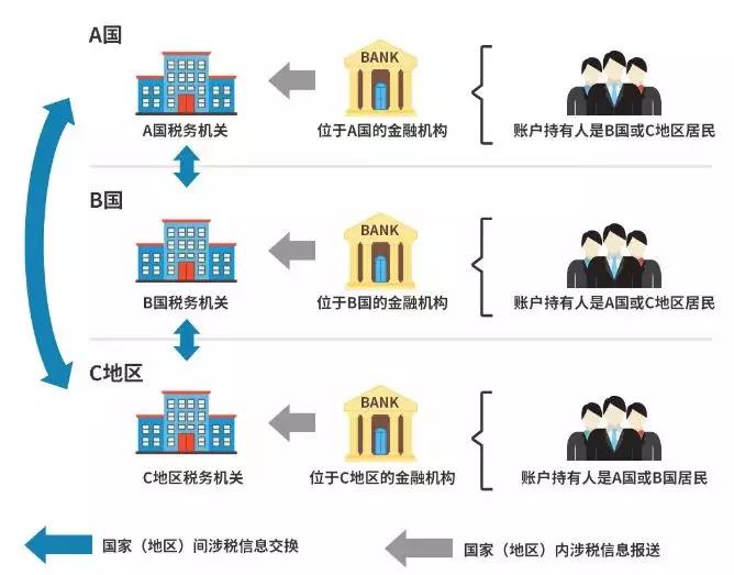 举个栗子,中国人在英国开了一个账户并存入了一笔很可观的钱,那么英国的银行就有义务把中国人存款的金额信息披露给中国税务总局,这就是CRS信息交换。